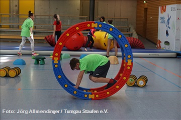 Der TSGV Albershausen hat sich bei den Stationen viele Highlights ausgedacht. Sehr beliebt bei den Jüngsten war die Luftballongrube mit rund 300 bunten Luftballons, die in einem der Geräteräume aufgebaut wurde. Auch die Rollbahn aus dem Turni-Mobil und die große Airtrack waren wieder eine beliebte Attraktion für viele Kinder. Außerdem gab es eine großzügige Station zum Hangeln und Schwingen. “Es ist schön zu sehen, wie viel Spaß die Kinder in unserer Halle beim Toben haben”, freut sich die erste Vorsitzende des TSGV Albershausen Christine Sahm. Auch die tatkräftigen ehrenamtlichen Helfer scheinen viel Spaß bei ihrer Arbeit zu haben. “Das ist das, was Ehrenamt ausmacht. Hier wird die Gemeinschaft gelebt”, so Jasmin Buresch vom Turngau Staufen.
